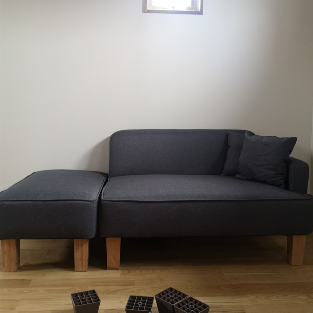 プラスチック製の脚を木製に交換するDIY。たったこれだけで雰囲気も良くなるんですよ!!そしてルンバもこの下を掃除してくれる様になりました!!